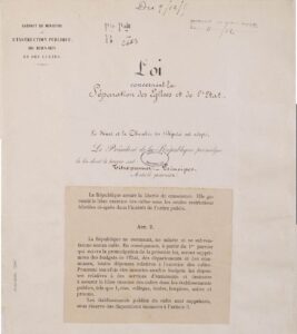 Le 9 décembre prochain marque l’anniversaire de la loi de 1905, dite « loi concernant la séparation des Églises et de l’État », clef de voûte de notre République laïque.