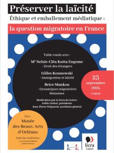 Catégories : Conférences, Conférences, Laïcité, PolitiquePar Gilles9 septembre 2025Laisser un commentaire Share this post Partager sur FacebookPartager sur Facebook Share on XPartager sur X Partager sur PinterestPartager sur Pinterest Partager sur LinkedInPartager sur LinkedIn Auteur : Gilles Navigation articlePrécédent Article précédent :Alfred Dreyfus à OrléansSuivantArticle suivant :Samuel Paty : ne jamais oublierArticles en rapportUltime liberté : les parlementaires doivent arrêter de tergiverser17 février 2026Élections municipales et Laïcité3 février 2026Le Laboratoire Loiret de la laïcité signe une convention avec l’Université d’Orléans11 novembre 2025Alfred Dreyfus à Orléans9 septembre 2025Banquet Républicain le samedi 5 juillet au Parc Pasteur à Orléans22 juin 2025Préserver la laïcité : Oser la rencontre « les religions du Livre » et la République4 mai 2025Pour la constitutionnalisation des 2 premiers articles de la loi de 190514 avril 2025Pour la défense de la laïcité dans l’École et dans notre société25 février 2025Accompagnement de la fin de vie : un texte avant de mourir svp…25 janvier 2025Laïcité : testez vos connaissances15 janvier 2025Hommage à Charlie et aux victimes des attentats de janvier 20157 janvier 2025Plus que jamais, nous sommes toujours Charlie !5 janvier 2025